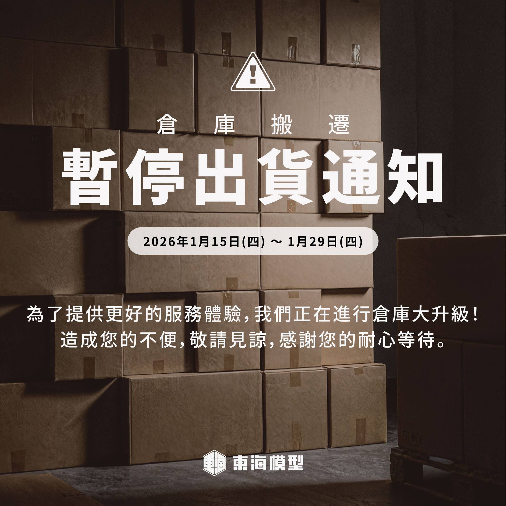 ⚠️倉庫搬遷公告 1/15-29 暫停出貨⚠️