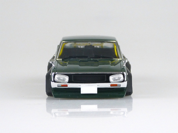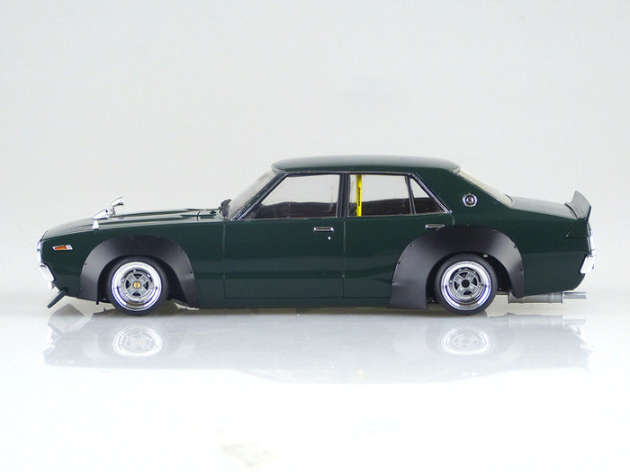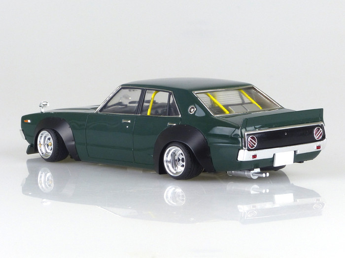ケンメリ4Drの新規パーツはワンテールにぴったりサイズの3分割ウイング。他にも角吊り目・ローレルグリル・ワンテール・チェリーテール・チンスポ・ワークスフェンダー・コンペハン・ダッツンバケット、ホイールは14インチMk-ⅡにひっぱりLB☆レーシングタイヤが付属。