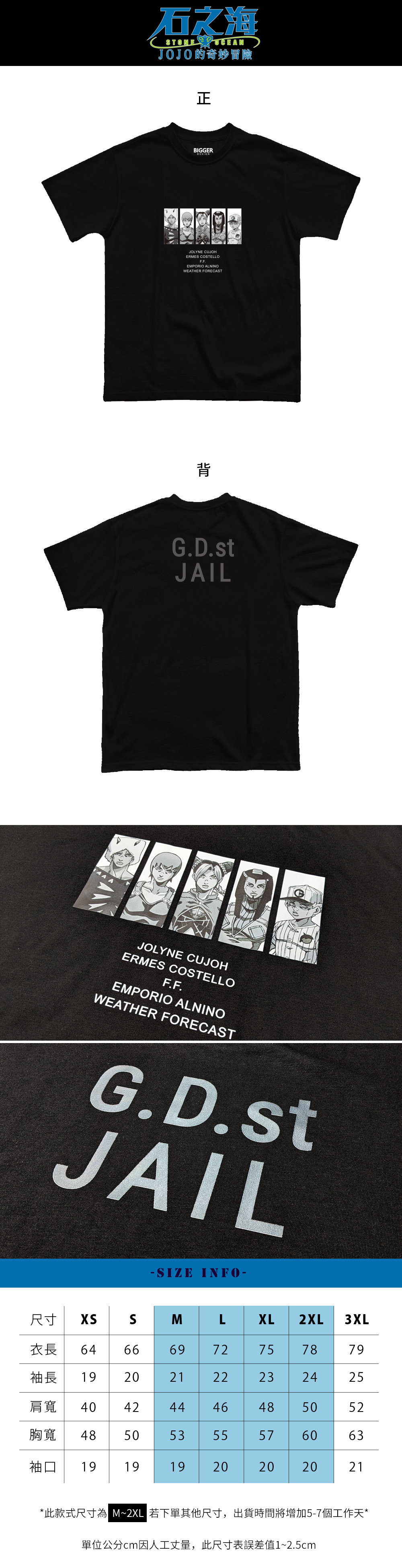 JoJo的奇妙冒險 S5 石之海 潮流 監獄 短袖T恤 黑色
