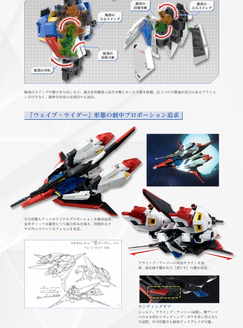 ■MS形態とウェイブ・ライダー形態、両方のフォルムに破綻がないよう各ユニット構造や形状を洗練させ、変形機構を構築。複雑なギミックの簡略化を成立させアップデートされた変形を実現。