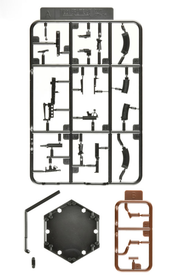 完成した銃とキャラクターを一緒に飾れるスタンド&カードが付属します。