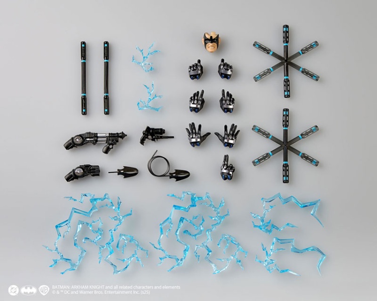 アメイジング・ヤマグチでは、そんなハイテクスーツ姿を、独自の可動ギミックにより身軽なアクションとともに立体化。口元のボイスシンセサイザーや、先端を交換することで発射状態を再現できるグラップネルガンが付属するほか、格闘武器「エスクリマ・スティック」と、回転状態を再現したスティックも同梱。さらに、多数の電撃エフェクトパーツにより、スティックから飛び散るスパークや敵へのダメージ演出など、迫力あるアクションシーンの再現が可能です。