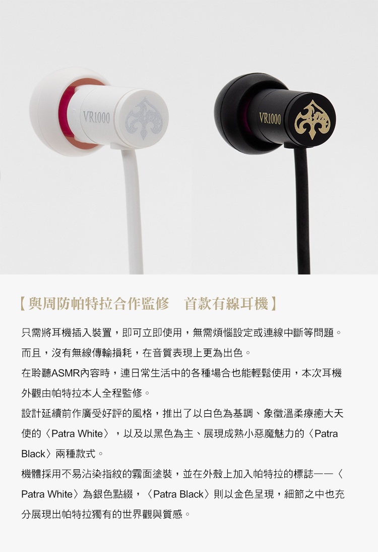 聯名有線耳機 VR1000 for ASMR Patra Black 白色 黑色 分別販售 附特典