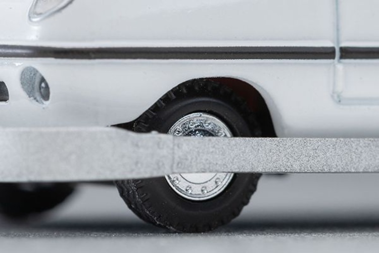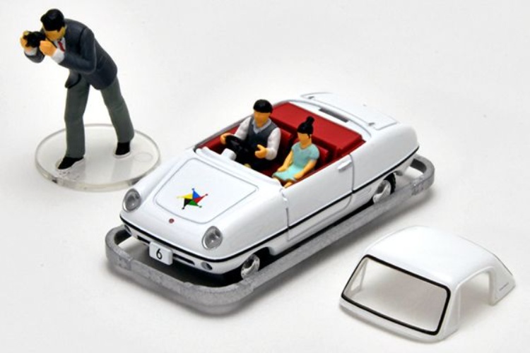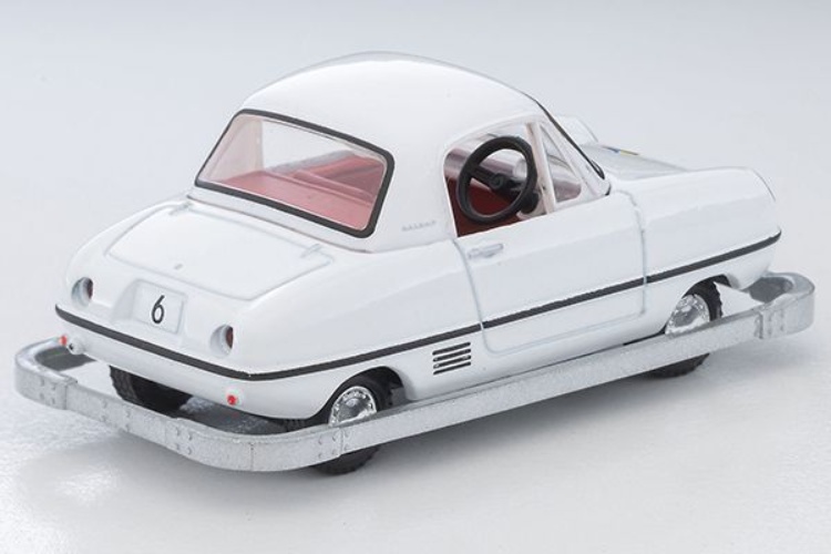 今回、TLVではダットサン ベビイを、開園当初を彷彿させるフィギュア付きで製品化いたします。3色が製作された実車のうち、まずは白と赤の2色を展開。白の6号車はホイールキャップを付けた新車当時の姿をイメージし、運転するこどもや写真を撮る大人のフィギュアが付属します。TLVは全て1/64の統一スケールですので、ダットサン ベビイの小ささも際立ちます。