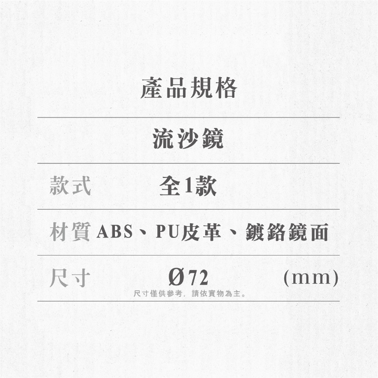 材質:上蓋ABS、下蓋PU皮革、鍍鉻鏡面