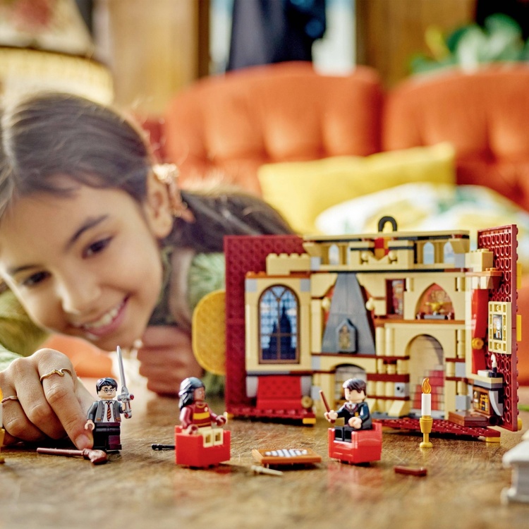 Harry Potter fans can show their Gryffindor house pride with this LEGO brick-built house banner (76409). A super everyday gift for kids aged 9 and up, it features a printed tile with the Gryffindor house crest and a hanger to display it proudly on the wall. The banner also opens to reveal an enchanting recreation of the Gryffindor common room with authentic details including a fireplace, seats and a chess board. A slide-in lenticular backboard creates magical 3D effects, including an image of Sirius Black appearing in the fire and a trophy showing 1st or 4th place.