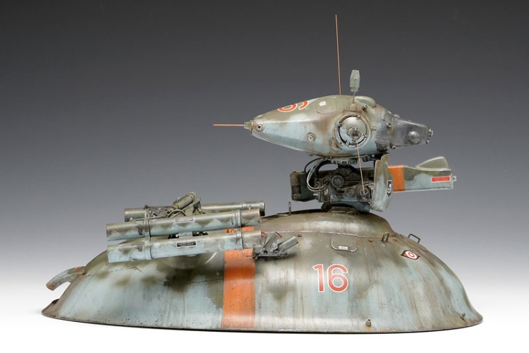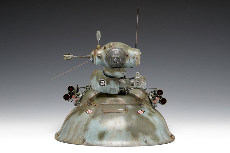 ホバー駆動の装甲車両に感知ユニットであるノイスポッター頭部を搭載した無人偵察機オスカル。