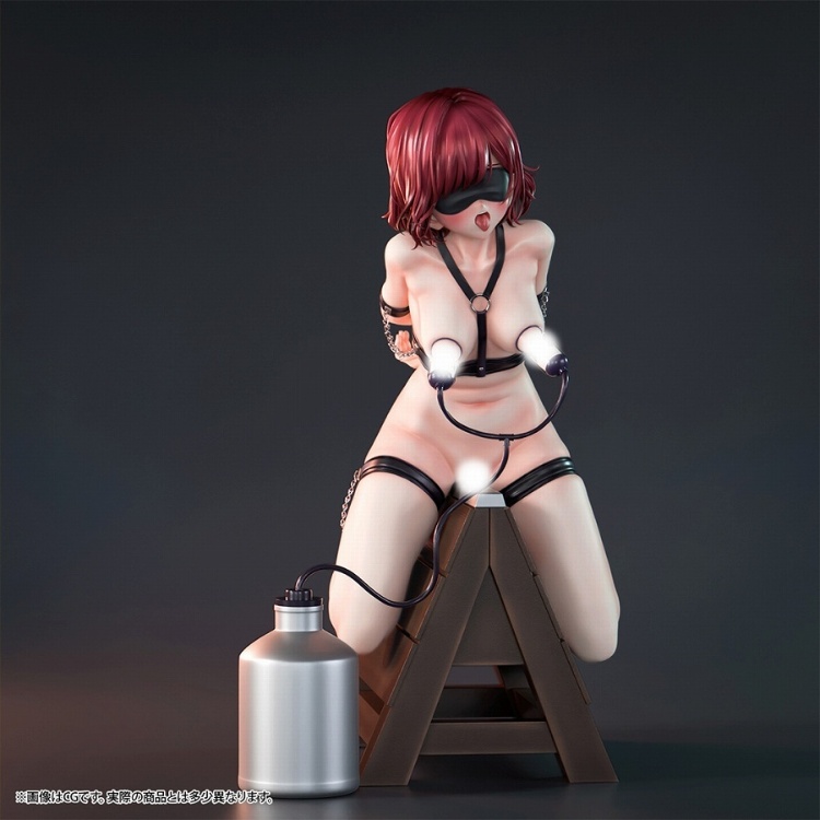 目隠しをしたまま搾乳器具を装着し、三角木馬に拘束された姿を立体化しました。