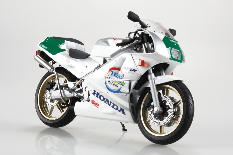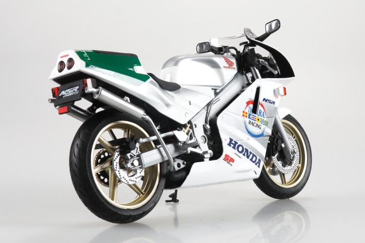 1986年から販売された、Honda NSR250R。その中から1989年にカウルデザインを一新して発売されたMC18型NSR250Rの追加カラーが完成品バイクシリーズに登場です。特徴的なカウル形状をはじめ、5角断面パイプを採用したリアアームやカラーパターンなど、特徴的なシルエットを余すことなく再現しました。フレーム・タンクにはダイキャスト製パーツを採用し、重量感・質感ともにハイレベルな完成品モデルです。是非お手元でお楽しみください。