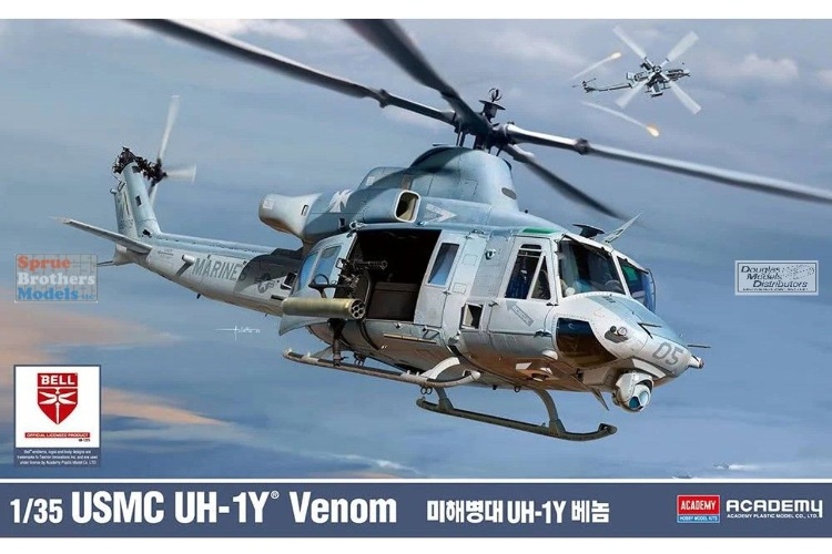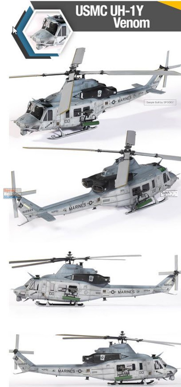 The UH-1Y Venmon (also known as “Yankee”) is a twin engine, 4 blade, medium sized multi-purpose versatile helicopter built by Bell. It is part of the Huey family and includes the latest technology. It has a new four bladed rotor system, new engines and transmissions, integrated digital cockpit and helmet-mounted sight display. It’s forward-looking infrared sensor system detect and display incoming threats.
