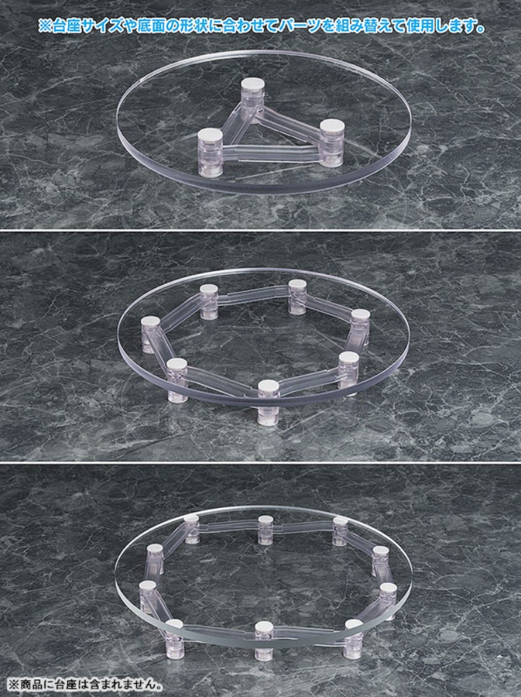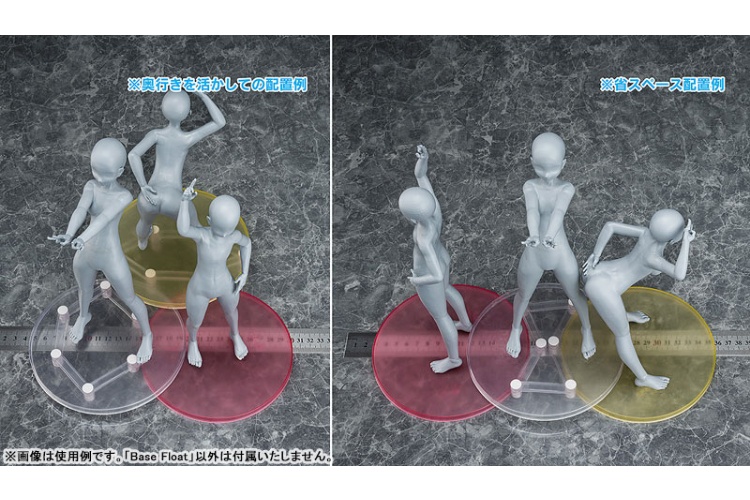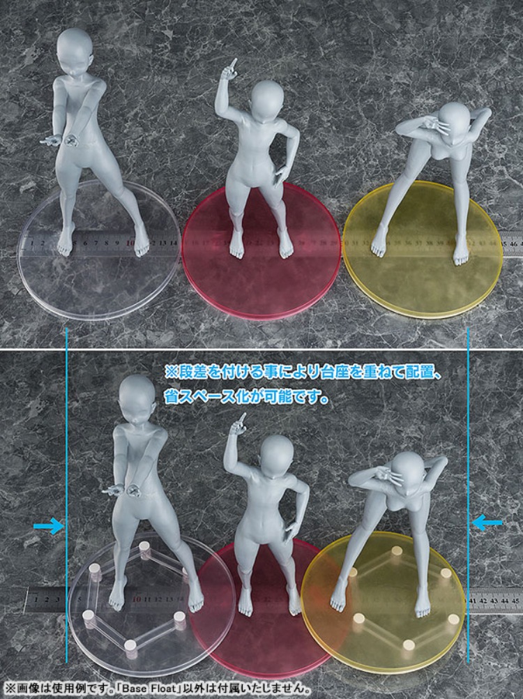 Base Floatはフィギュアのベース下に設置する高さ可変式スケルトン構造。主張せず自然にフィギュアを持ち上げ、複数のベースを重ね合わせ、新たな展示空間を創出します。