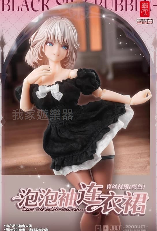 (預購) 蝸之殼 1/12 機娘通用 真絲材質 泡泡袖連衣裙 黑色 20251230