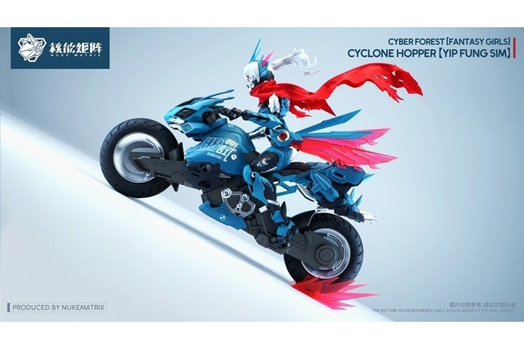 ■NUKE MATRIX社企画製作の下、サイバーパンク風のプラモデルシリーズ「サイバーフォーレスト」より静寂な樹海に佇み「サイクロンホッパー」の力を宿すストームチェイサー「サイクロンホッパー:イップ・フォン・シム」が登場!