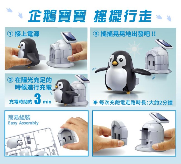 首次與「台北市立動物園」聯名科學玩具,療癒又可愛!寓教於樂的企鵝寶寶,組裝簡單,除了運用太陽能產生動能,太陽光也跟企鵝的生長息息相關,一起跟著我們一探究竟吧!