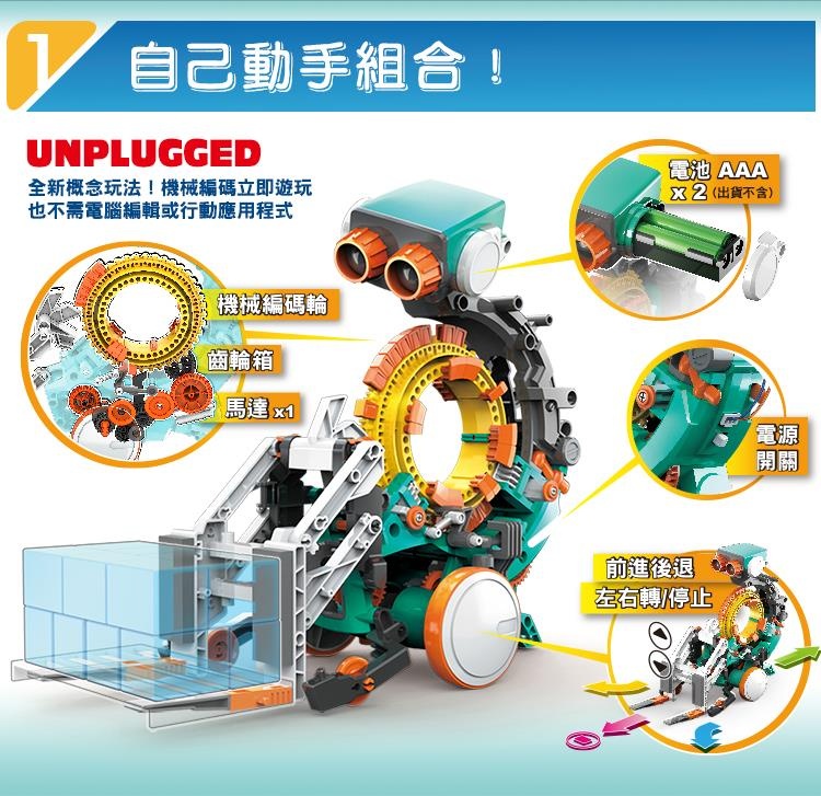 誰說只能在電腦寫程式? 直覺式程式編輯,不須電腦也可培養邏輯思考力。超過5種動作變化,歡迎來挑戰,看看誰的造型有創意!DIY模型,滿足組裝樂趣,台灣研發製造,使用環保無毒ABS材質,安全無虞。