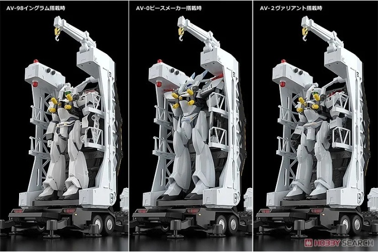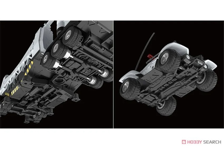 ● 後部的多功能掛架除了可搭載另售的 MODEROID 英格蘭姆、和平使者、英勇式等劇中登場的警察用 Labor 外,亦具備 Labor 固定用支架可動、吊桿旋轉與踏板伸縮機能。