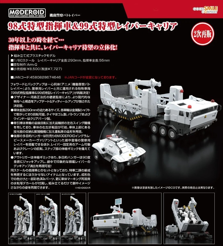[再販] Good Smile 1/60 MODEROID 機動警察 98式特型指揮車+99式特型Labor運輸車 組裝模型