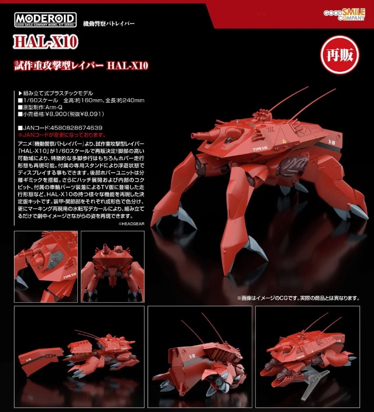 ● 出自電視動畫《機動警察》,試作重攻擊型 Labor「HAL-X10」以 1/60 比例期待已久的首次塑膠組裝模型化!
