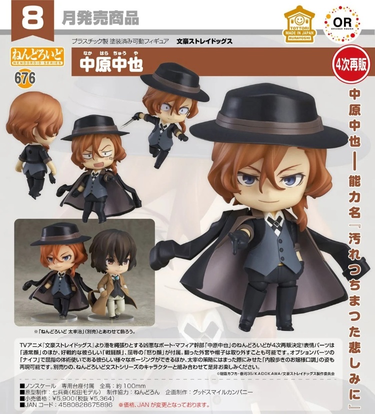 來自電視動畫《文豪 Stray Dogs》,以港口為地盤的凶惡港口黑手黨幹部「中原中也」黏土人決定第四次再販!