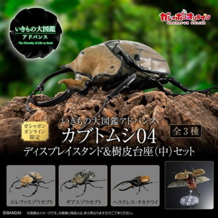(預購) BANDAI 扭蛋 生物大圖鑑 獨角仙04 附展示架&樹皮台座(中) 全3種 一套3入販售 20260406
