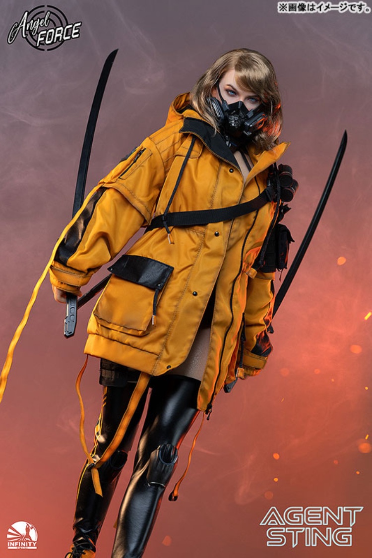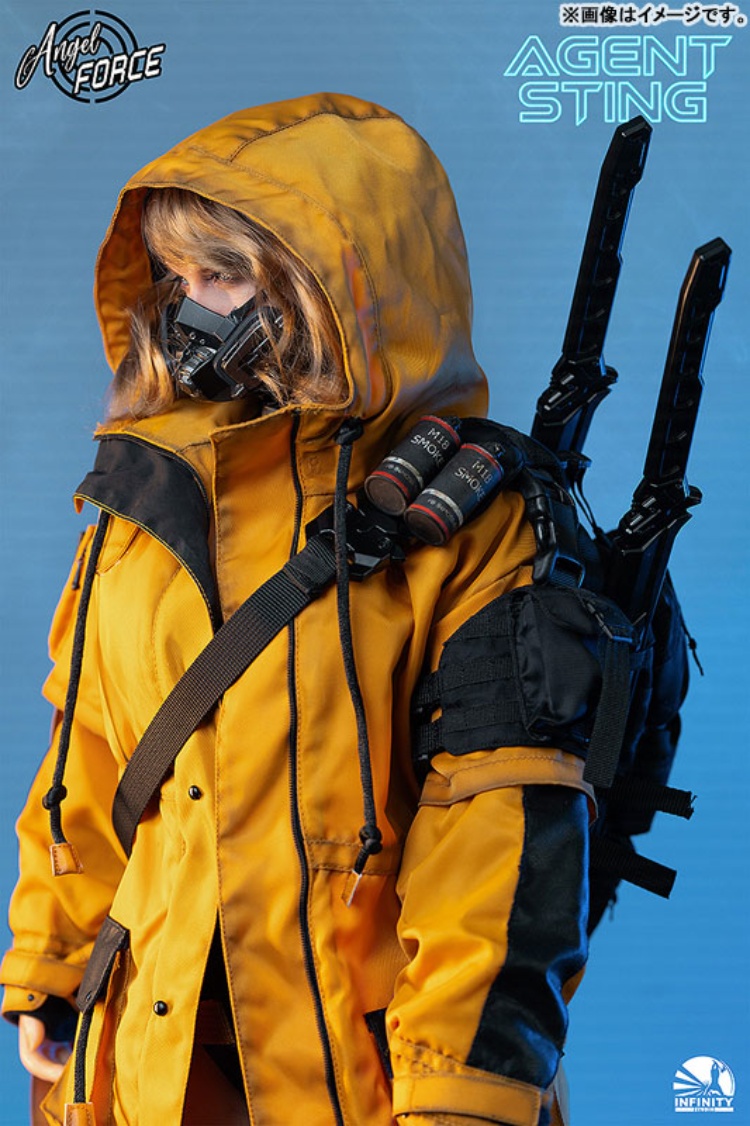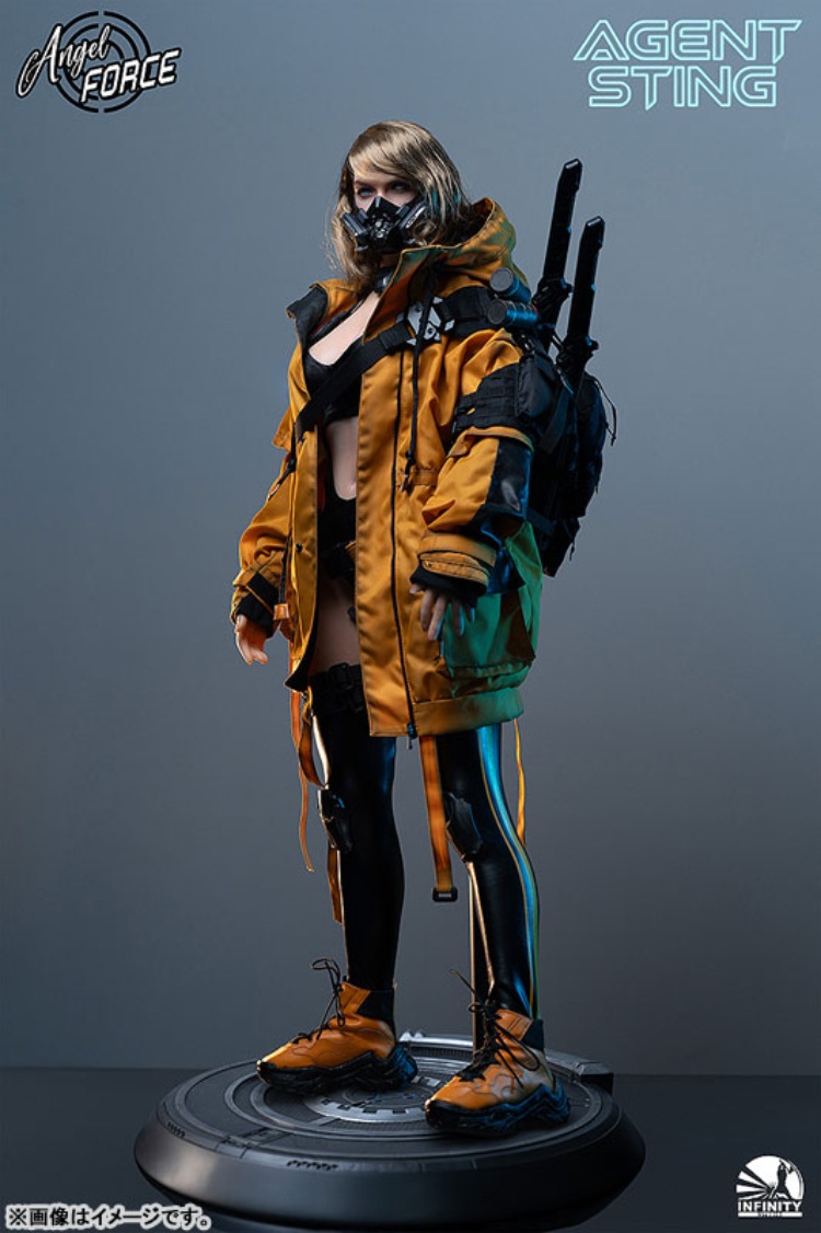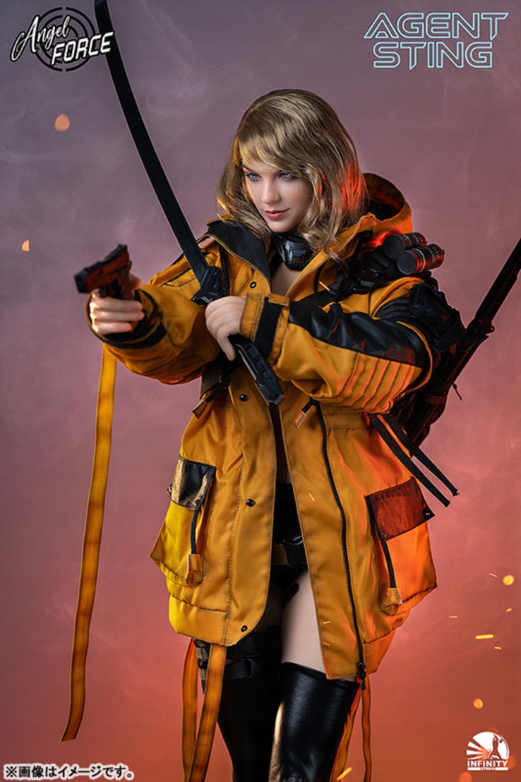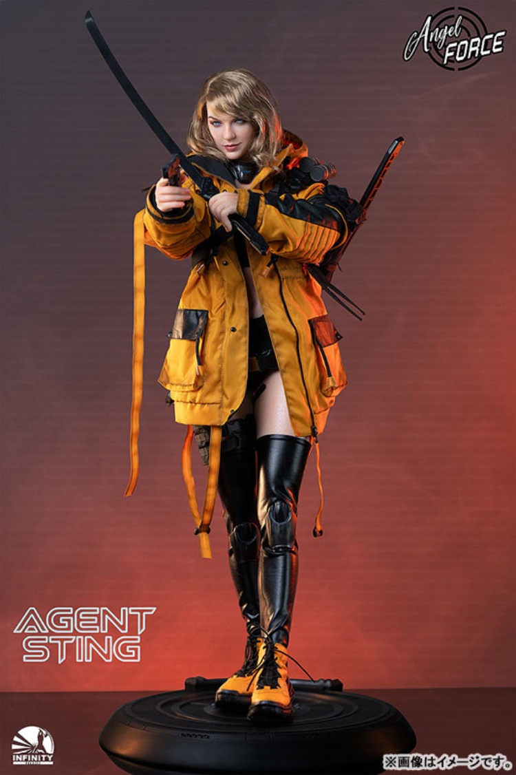 出自Infinity Studio全新系列「Angel Force」,第二彈AGENT-STING登場!本商品的採用手工植毛技術,內部由合金骨架支撐。透過矽膠材質,以包覆全面肌膚技術追求逼真質感。全身上下,包含指尖,搭載60處以上的可動關節,可表現自然的站姿及戰鬥姿勢。 另外,附豐富的裝備配件,可盡情重現各種特務場景。