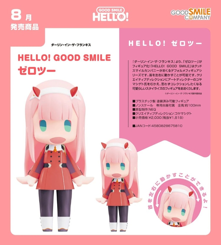 「HELLO! GOOD SMILE」是由 Good Smile Company 推出的 Q 版模型系列。人偶的頭部可以左右轉動。