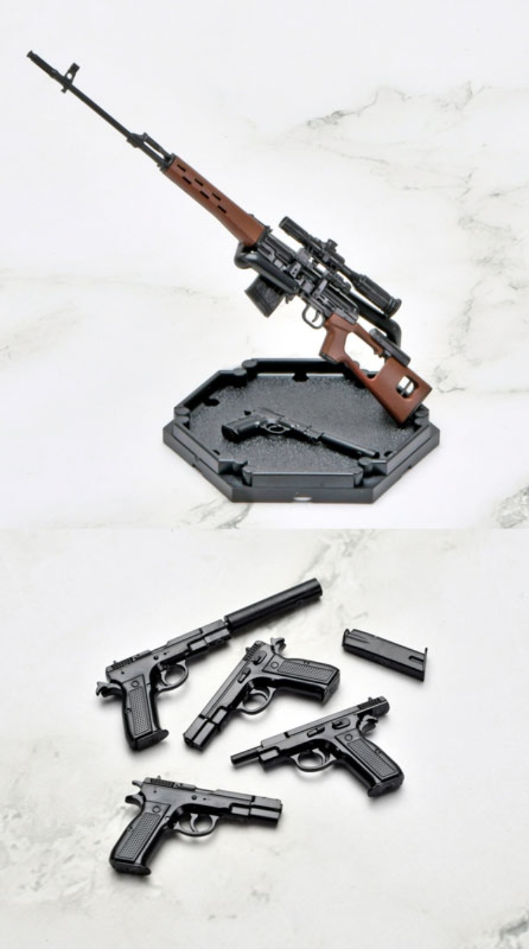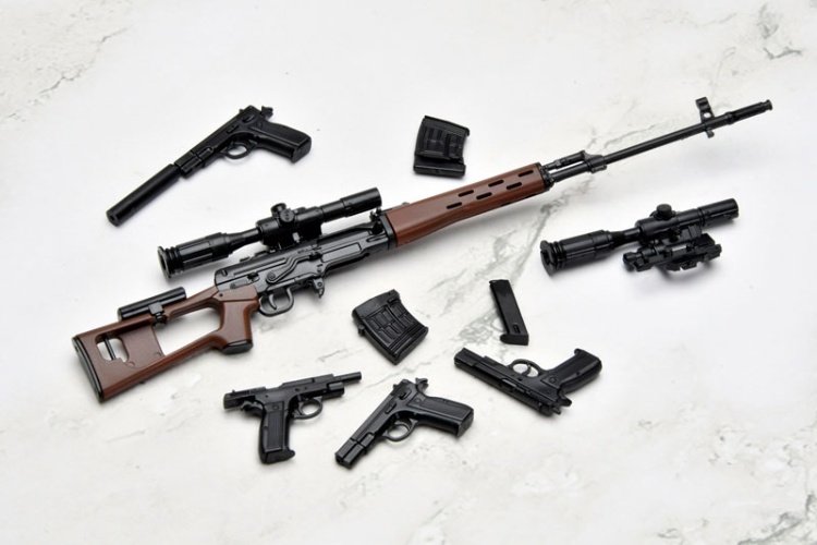 這款模型是人氣槍戰動畫《神槍少女》(講述一位接受過機械改造的少女與她的訓練員之間羈絆的故事)與槍械模型系列「Little Armory」的連動產品。模型高度還原了「莉可」使用的槍械。主武器是蘇聯製造的半自動狙擊步槍SVD,擁有壓倒性的強度和威力。副武器是Cz75,一把在鐵幕後精心打造的傳奇神槍。套件包含展示支架,可將完成的槍械和角色卡一同展示。