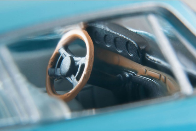 這款淺藍色911還原了早期車型的風采;請注意其獨特的保險桿造型和標誌。駕駛側的後視鏡也得到了還原。這款車型每次推出都備受好評,千萬不要錯過!