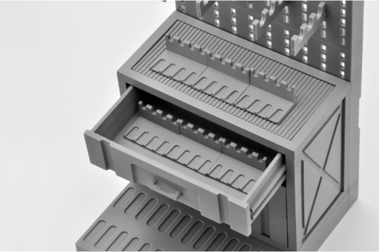 此套裝包含一個抽屜式置物櫃和一個手槍架。
