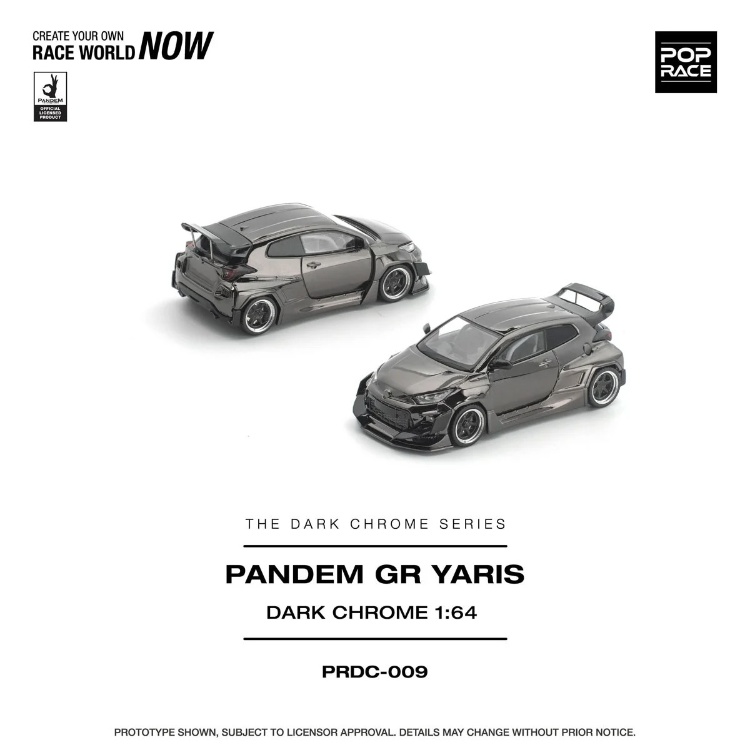 在人氣品牌 POP RACE 的**「PANDEM GR Yaris」**中,充滿重量感的暗黑鍍鉻版本華麗亮相。