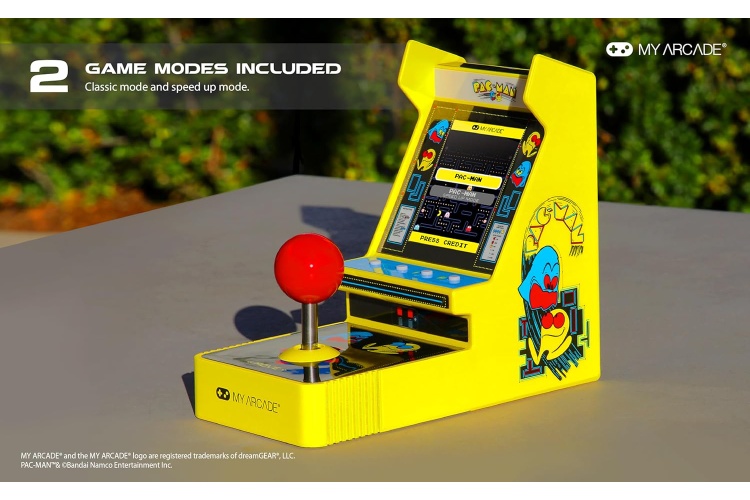 耳機插孔:3.5 公釐耳機插孔可讓您私密地在旅途中享受 PAC-MAN 的樂趣。 內建喇叭,音量控制和可調整螢幕亮度。